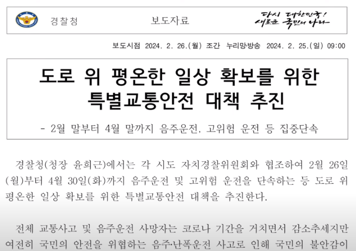 음주운전의 경우에는 음주 사고 다발 지역과 유흥가, 골프장 진출입로 등에서 상시 단속하고, 학생들 개학 철 주간에는 어린이 보호구역을 중심으로 단속하고요 동승자의 방조행위도 엄중하게 처벌한다고 합니다.