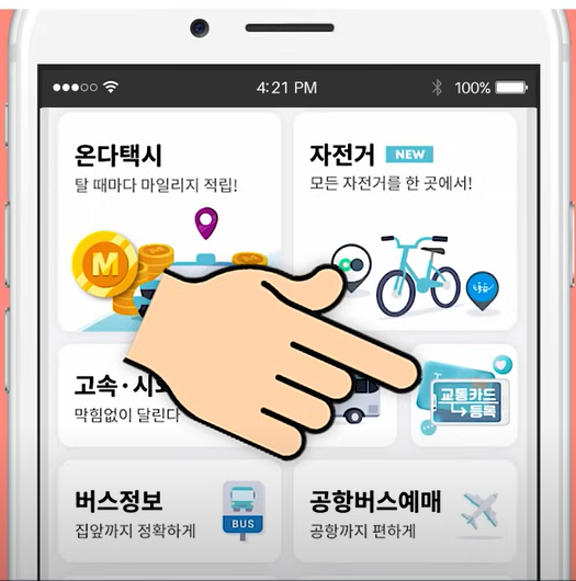 첫 번째 소식은 티머니 고 앱에 교통카드를 등록만 해주세요 여러분이 평소에 사용하는 대중교통으로 사용하는 카드를 한 번만 등록해두면 버스나 지하철, 택시, 고속/시외버스, 자전거 등을 이용할 때마다 자동으로 마일리지가 계속 쌓이는데요 그냥 평소처럼 카드만 찍고 타면 100원씩 자동으로 적립됩니다.