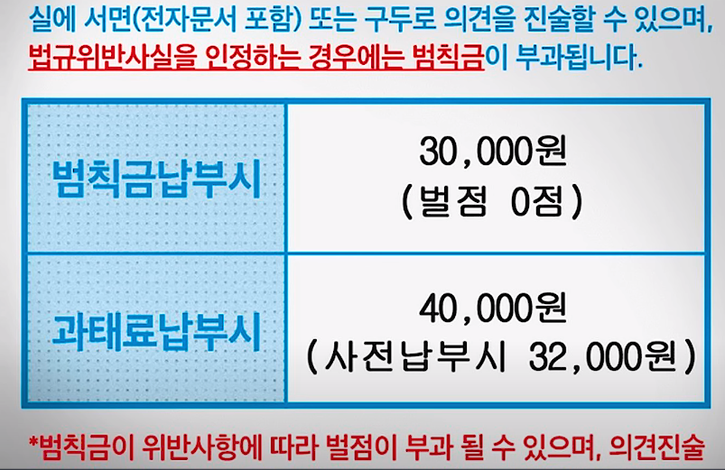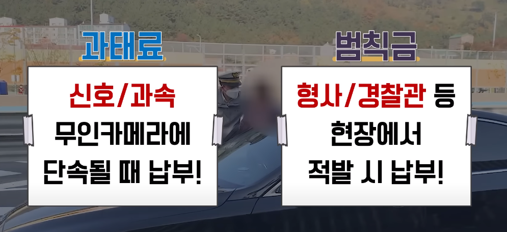 그러니까 여러분들이 운전하다가 경찰에게 현장에서 적발이 되면 이때는 과태료를 내고 싶어도 무조건 범칙금으로 부과가 되는 거죠 하지만 진짜 문제는 이겁니다. 현재 시행하고 있는 교통법규에서는 과태료의 경우는 그냥 정해진 금액을 납부하면 되지만,