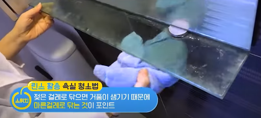 욕실 거울에도 린스를 묻혀 주면 좋은데요 마른 천에 린스를 묻혀 꼼꼼히 거울을 닦아주기만 하면 됩니다. 다른 세제보다 린스를 활용하면 물때를 쉽게 제거할 수 있습니다. 그리고 욕실 거울 아래에 유리로 선반이 있는 경우도 린스를 활용해서 닦아주면 물때가 잘 지워지니 꼭 활용해 보세요