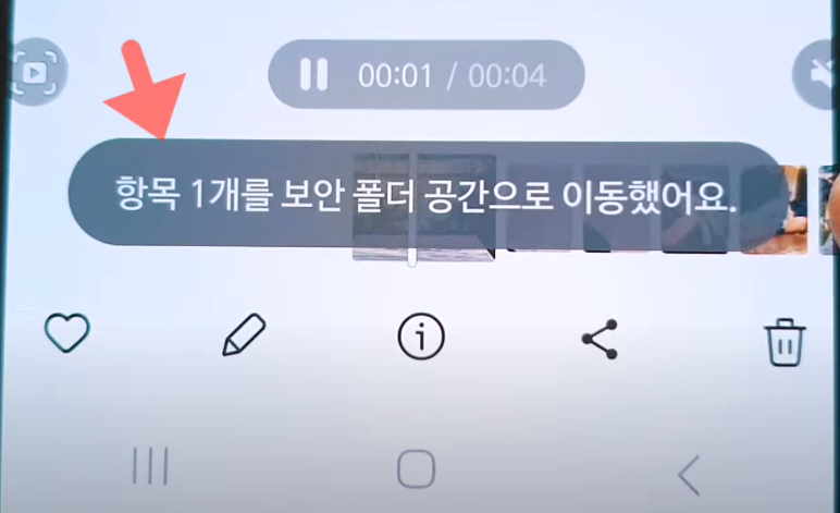 그럼 누군가 들어갈 때마다 지문이나 비밀번호, 패턴을 입력해야 하는데 이때 핵심은 스마트폰을 잠금 해제할 때랑 완전히 다른 비밀번호로 따로 설정할 수 있습니다. 그래서 누군가에게 보여주기 싫은 민감한 사진이 있다면 아래 사진처럼 우측 상단 점 세계를 누른 다음 보안 폴더 공간으로 이동 이걸 눌러주세요 그럼 보안 폴더에 완전히 잠글 수 있습니다.