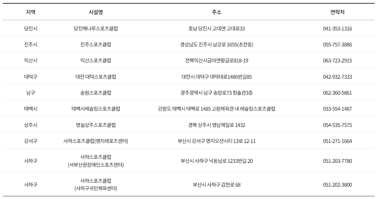 ※ 지정 체육시설 리스트는 추후 순차적으로 업데이트 예정입니다.