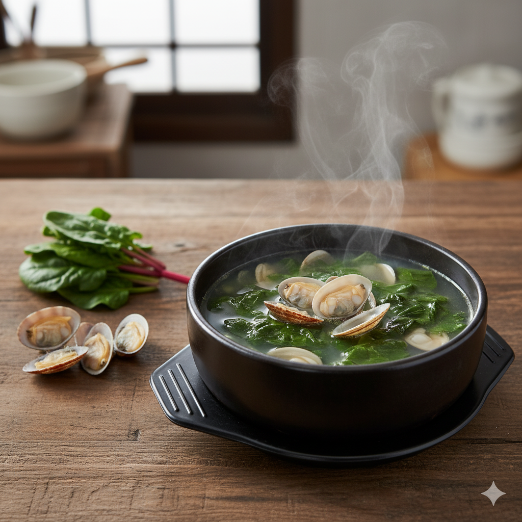 시금치에 풍부한 철분과 조개류(특히 모시조개, 바지락)의 철분, 단백질, 미네랄이 만나면 조혈 작용이 극대화됩니다. 시금치에 부족한 단백질을 조개가 보충해주니, 영양학적으로 완벽한 조합입니다. 시금치 모시조개국은 맛과 영양을 모두 잡은 최고의 레시피입니다.