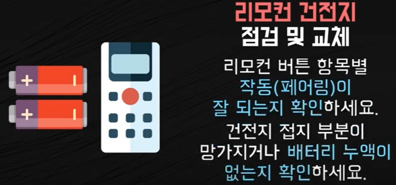 ▶그리고 리모컨 점검과 건전지를 확인해 보시고요