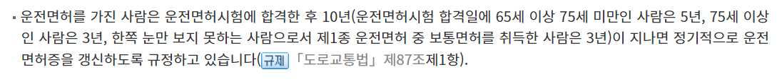 정해진 기간 안에 운전면허 적성검사(갱신)를 하지 않은 사람 중 제1종 운전면허 소지자에게는 과태료 3만 원, 제2종 운전면허 소지자에게는 과태료 2만 원이 부과됩니다. 또한 1종 운전면허와 70세 이상의 2종 운전면허 소지자는 만료일 다음날부터 1년 이상 경과 시 운전면허가 취소되니 올해 안에 적성검사 / 갱신을 완료해야 합니다.