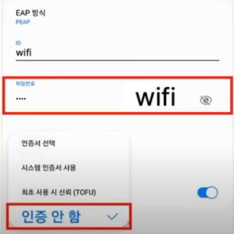 다만 보안이 걱정된다면 와이파이 신호 중에 'Public WiFi Free' 가 아닌 'Public Wi Fi Secure'를 선택, 그리고 PEAP를 선택하시고 암호(비밀번호)를 입력하고 사용하시면 되겠습니다. 자 여기서 사용자 이름은 wi fi이고, 암호(비밀번호)에 wi fi를 입력하시고 인증서 선택에서 '사용 안 함'으로 설정하시고 연결을 눌러주시면 보완된 Wi Fi를 사용할 수 있습니다.