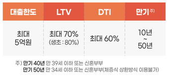 (만 40세 미만 채무자 및 공사가 사전에 심사한 경우에만 허용하며, 대출만기 50년 적용 불가)