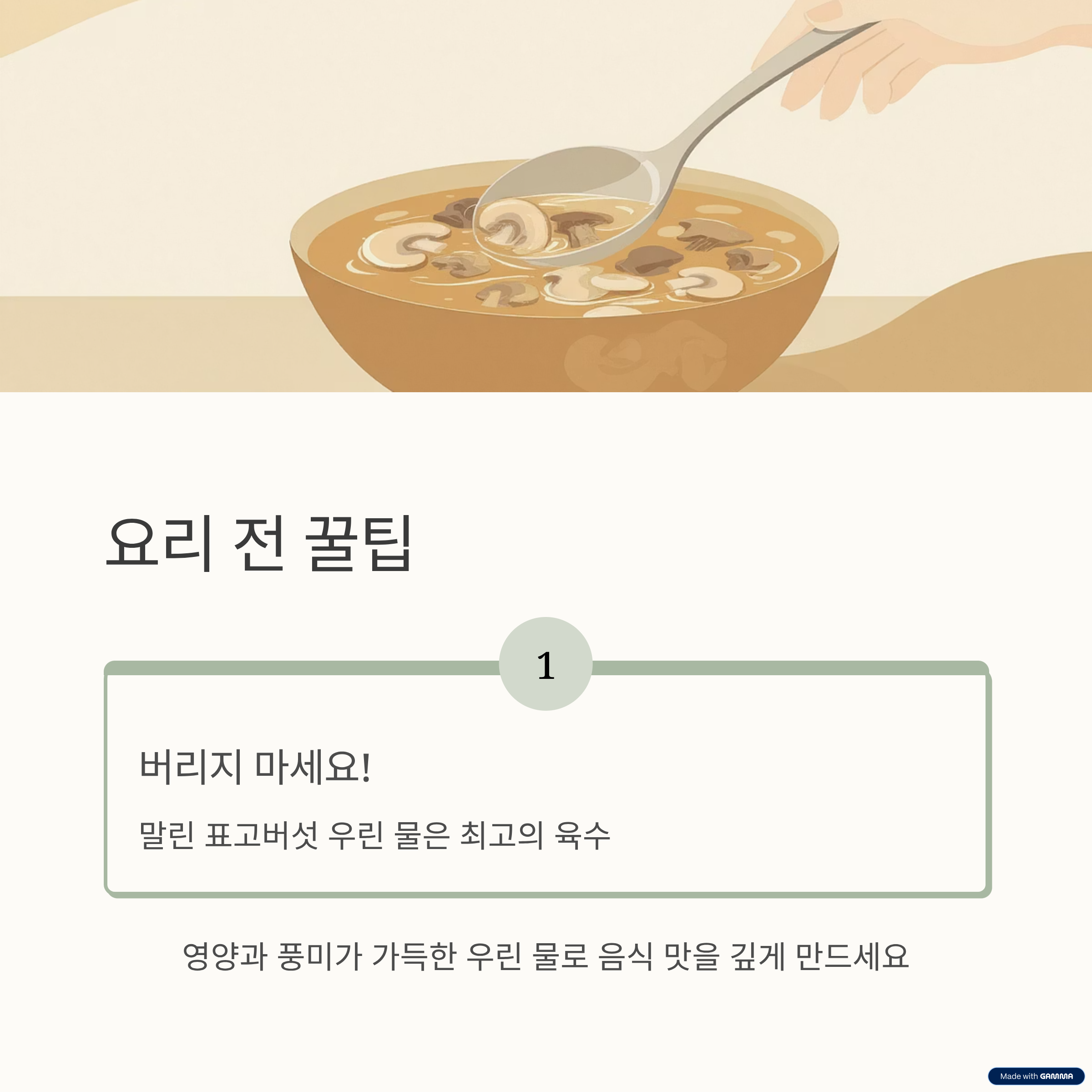 버섯의 영양과 향이 녹아 있어 육수로 활용하면 요리의 풍미가 엄청나게 좋아져요!