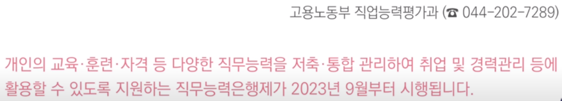 9월부터 직무능력은행제가 도입됩니다. 직무능력은행제는 개인이 직업훈련이나 교육 등 다양한 방법으로 직무와 관련해서 자기 계발을 하면 그렇해 습득한 직무능력을 정부 데이터베이스에 저장하고 취업이나 이직 시 필요할때 인증서로 발급을 받아서 제출할 수 있도록 하는 제도입니다.