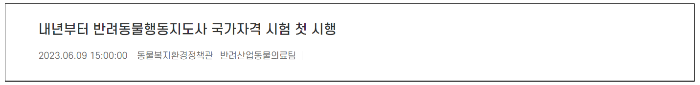 작년 4월에 동물보호법이 개정돼 반려동물 행동지도사 국가자격 신설을 위한 제도가 마련됐고 내년 4월 27일에 본격적으로 제도가 시행된다고 합니다.